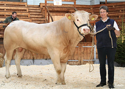 Das Rind "Joba" aus unserer Zucht ist der Hauptpreis für die Verlosung bei der diesjährigen Blonde d `Aquitaine Bundesschau.